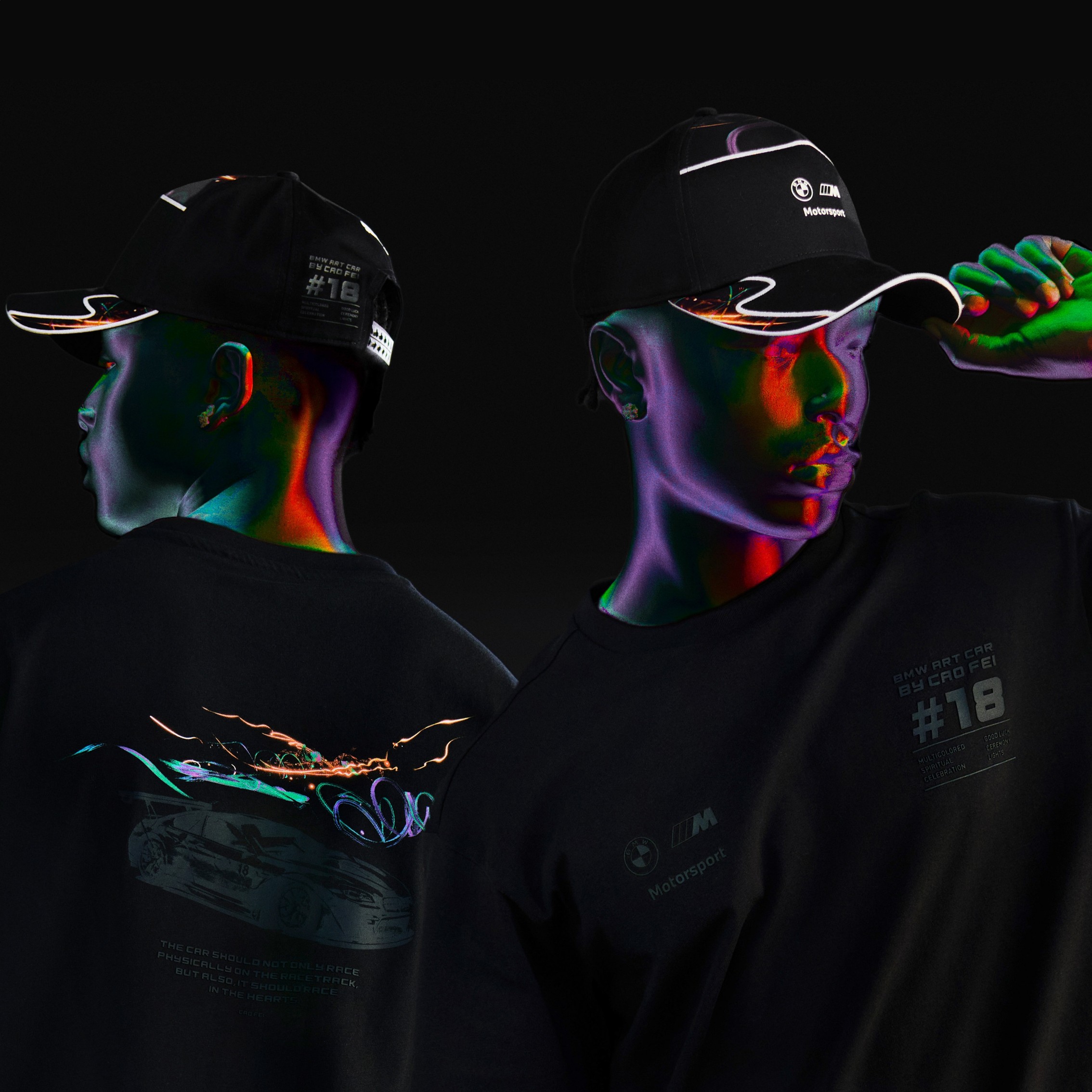 如今,這份前瞻創意被轉化為可穿戴的動感藝術。透過科技感細節、AR 風格圖像與夜光元素,將賽道基因與當代美學合而為一,形塑兼具動能與藝術張力的全新時尚語彙。